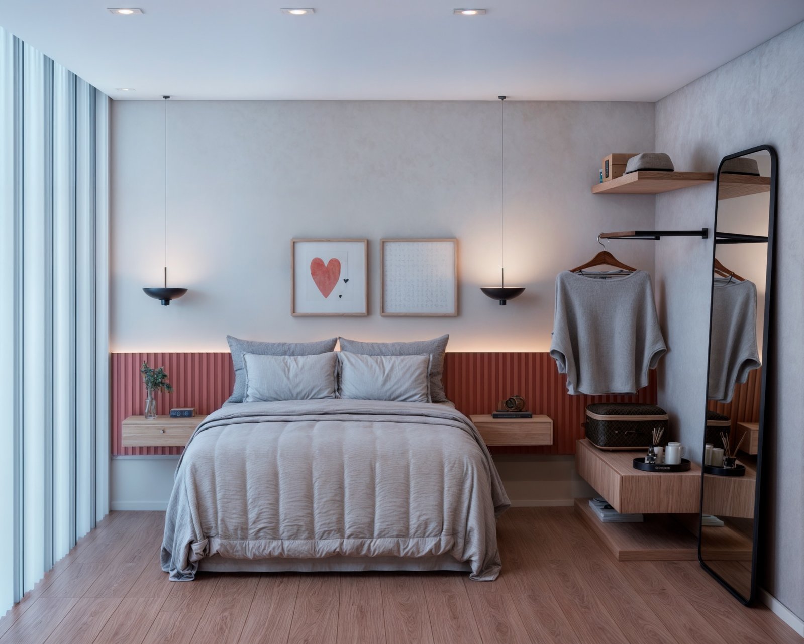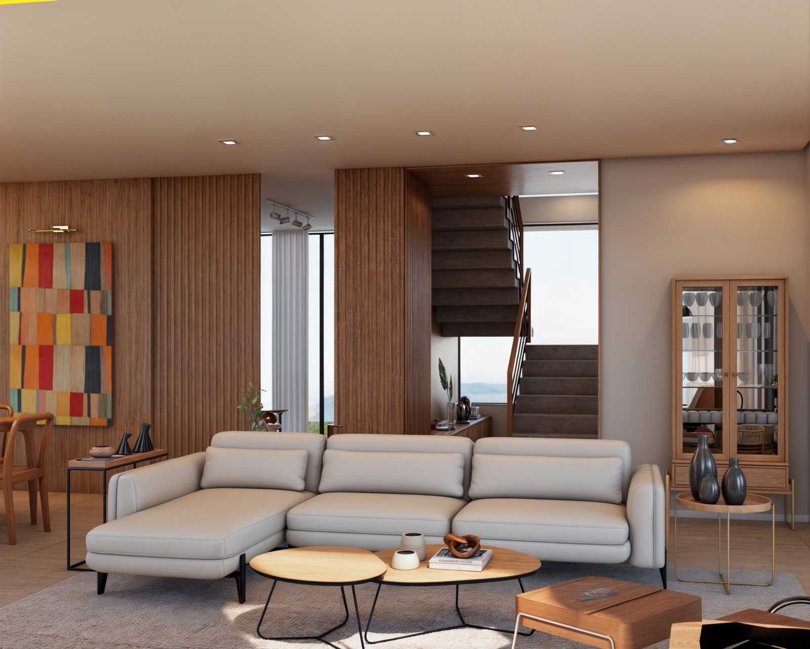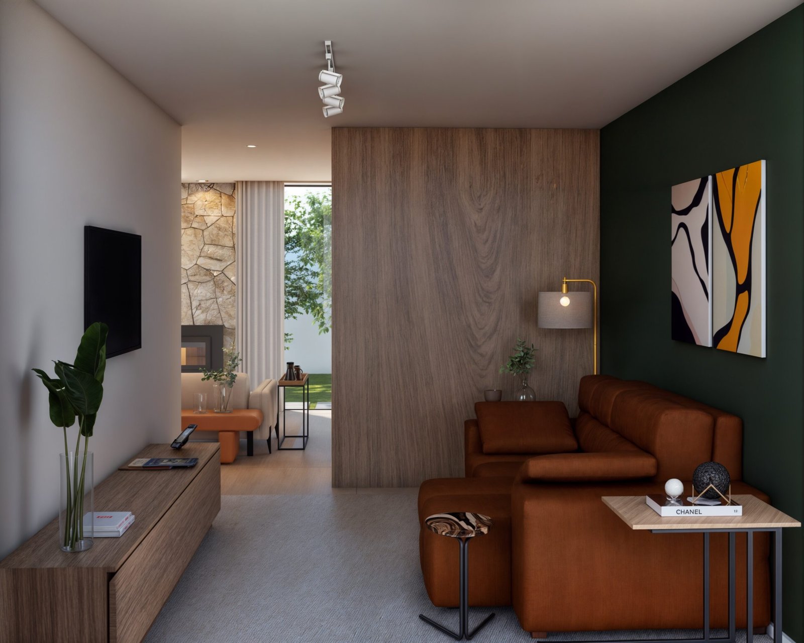 Para isso usamos muita madeira e elementos neutros, para destacar os quadros e objetos que esse casal tanto ama, explorando cada cantinho com design e acolhimento.
