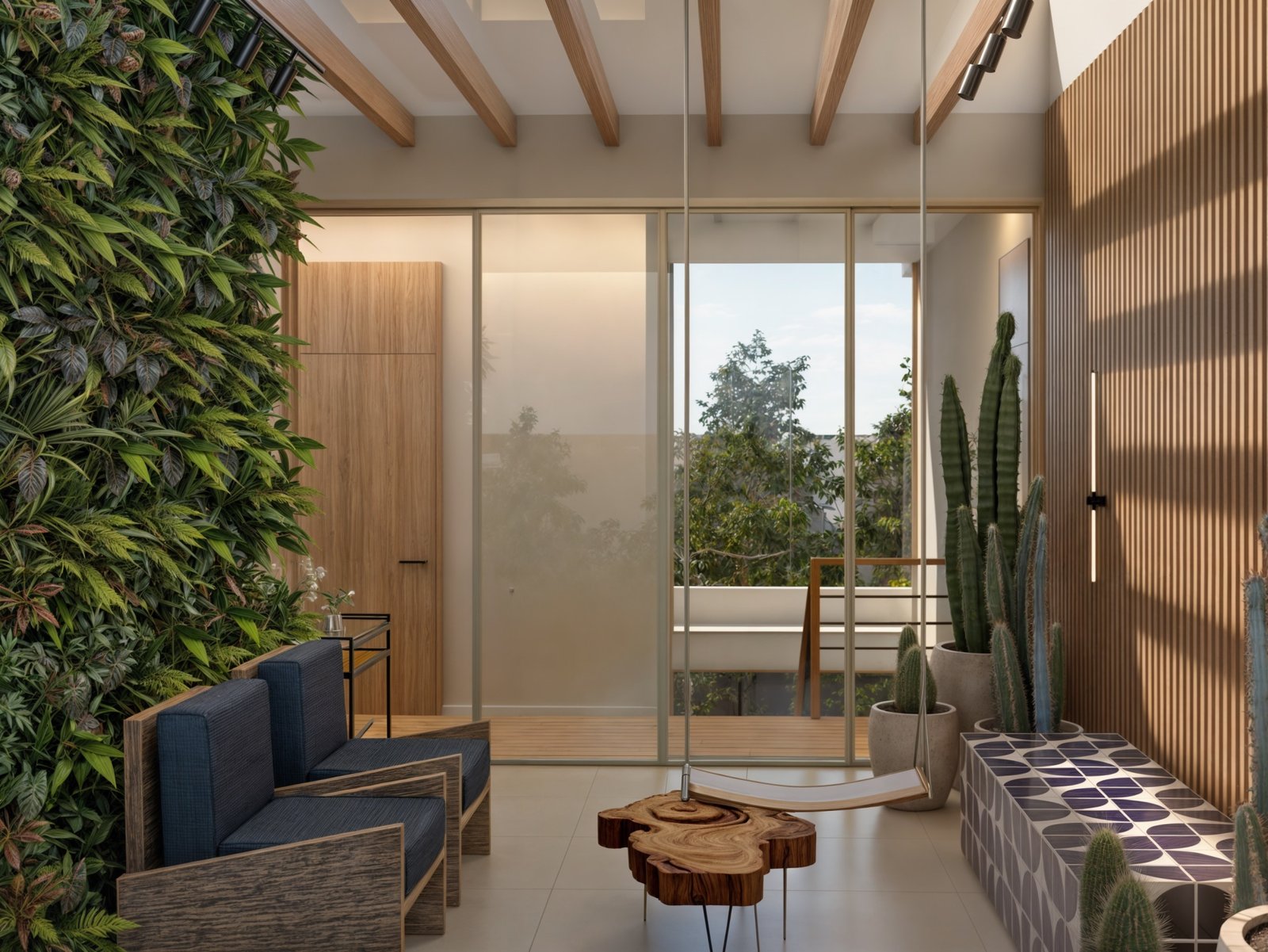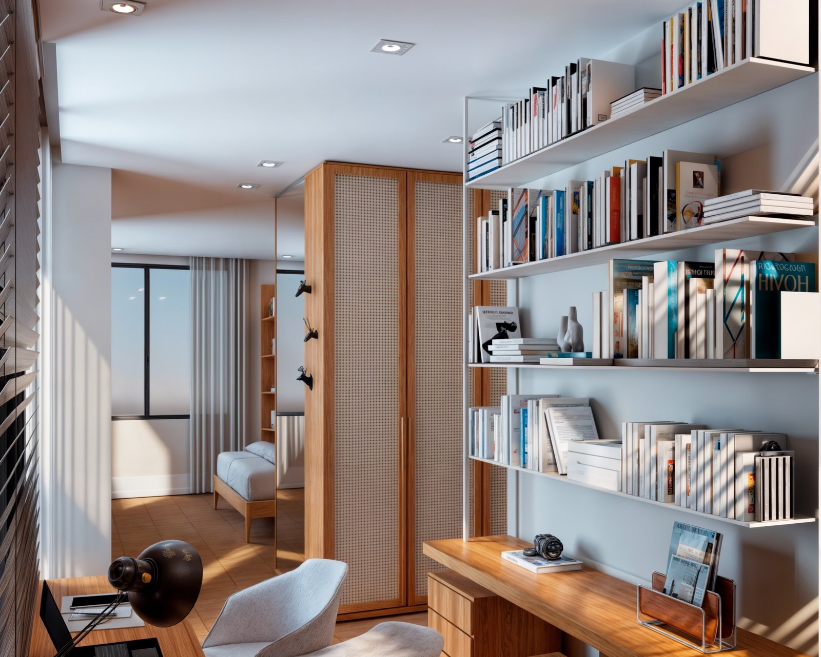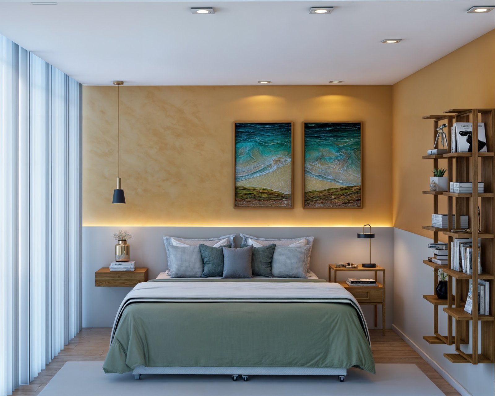 Para isso usamos muita madeira e elementos neutros, para destacar os quadros e objetos que esse casal tanto ama, explorando cada cantinho com design e acolhimento.